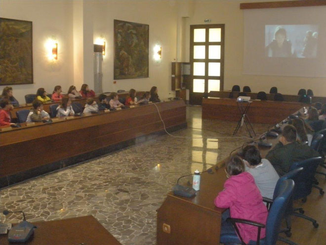 Στη συνέχεια στην αίθουσα του Δημοτικού Συμβουλίου παρακολούθησαν μέρος και ενημερώθηκαν για την Ευρωπαϊκή Καμπάνια ενάντια στο Σχολικό Εκφοβισμό, που υλοποίησε ως συντονιστής εταίρος το Χαμόγελο του Παιδιού και πέντε κράτη μέλη της ΕΕ (Ιταλία, Βουλγαρία, Εσθονία, Λετονία και Λιθουανία).