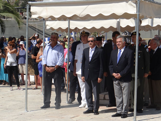 Ο Περιφερειάρχης Νοτίου Αιγαίου παρακολούθησε την Δοξολογία και κατέθεσε στεφάνι στο μνημείο πεσόντων παρόντων των βουλευτών Δωδεκανήσου κ. Βασίλη Υψηλάντη και κ. Μίκας Ιατρίδη, της στρατιωτικής ηγεσίας της Δωδεκανήσου με επικεφαλής τον Υποστράτηγο Αλκιβιάδη Στεφανή, Διοικητή της 95 ΑΔΤΕ και τον Υποναυάρχο Παναγιώτη Παστουσέα ΠΝ, Υπαρχηγό ΓΕΝ, των τοπικών αρχών αλλά και των κατοίκων του Καστελορίζου. Στη συνέχεια επισκέφθηκε το ανατολικότερο άκρο της Ελλάδας – και κατ΄ επέκταση της Ευρώπης- τη νήσο Στρογγύλη για να χαιρετίσει από κοντά την φρουρά που με πίστη, τόλμη και αγάπη για την πατρίδα φυλά Θερμοπύλες, στο φυλάκιο του νησιού.