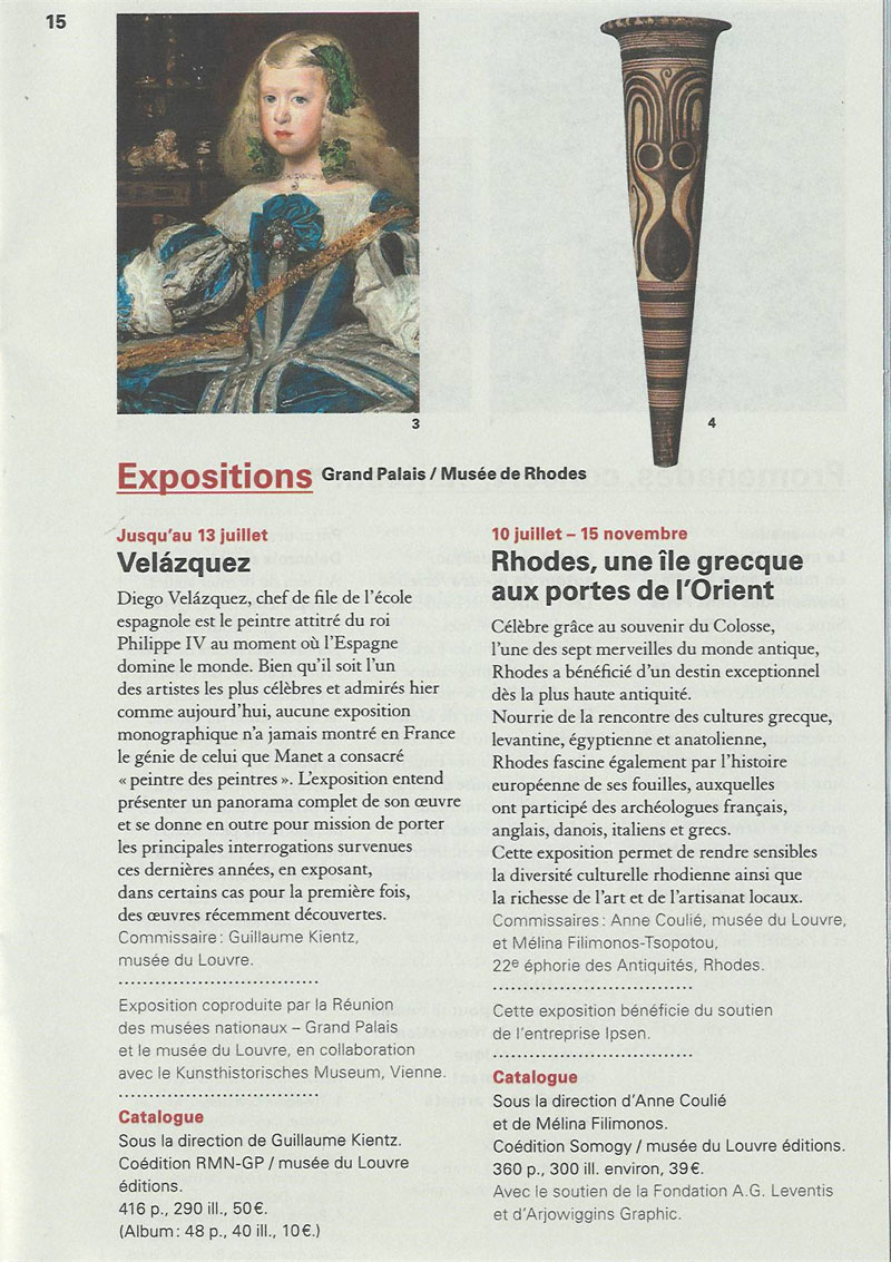 Την υπογραφή της συμφωνίας την Δευτέρα στο Παρίσι ανακοίνωσε σήμερα ο Περιφερειάρχης κ. Γιώργος Χατζημάρκος, ο οποίος δήλωσε ευτυχής και υπερήφανος που η επίπονη προσπάθεια που κατεβλήθη όλο αυτό το διάστημα από πλευράς της Περιφέρειας Νοτίου Αιγαίου, στέφθηκε με πλήρη επιτυχία. Τα εγκαίνια της Έκθεσης, που αποτελεί ένα εξαιρετική σημασίας πολιτιστικό γεγονός για την Ρόδο και την χώρα συνολικά, θα γίνουν στις 10 Ιουλίου και θα είναι επισκέψιμη για το κοινό μέχρι και τις 15 Νοεμβρίου, καλύπτοντας όλο το διάστημα της τουριστικής περιόδου. Η Έκθεση της Ρόδου έχει συμπεριληφθεί και στην επίσημη ατζέντα των εκδηλώσεων του Μουσείου του Λούβρου για το έτος 2015.