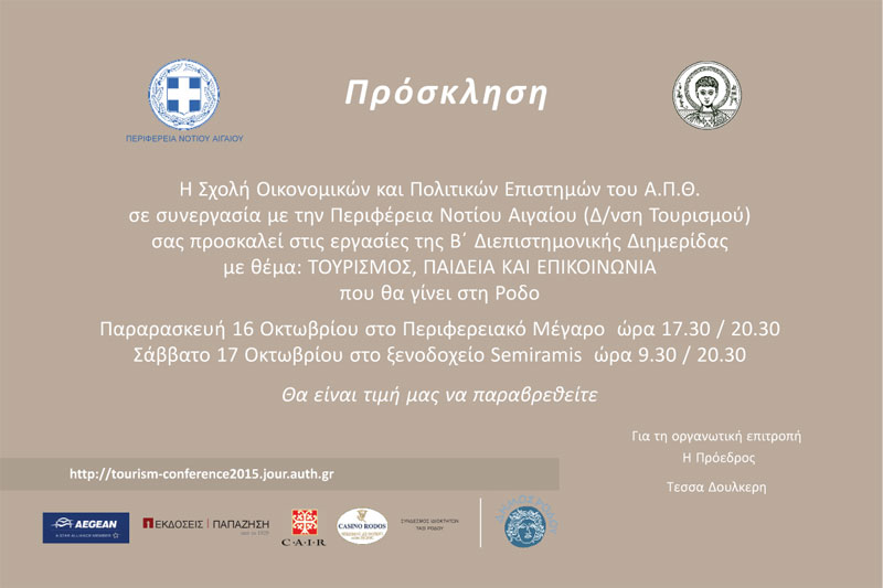 Διεπιστημονική Διημερίδα με θέμα:«Τουρισμός, Εκπαίδευση και Επικοινωνία»