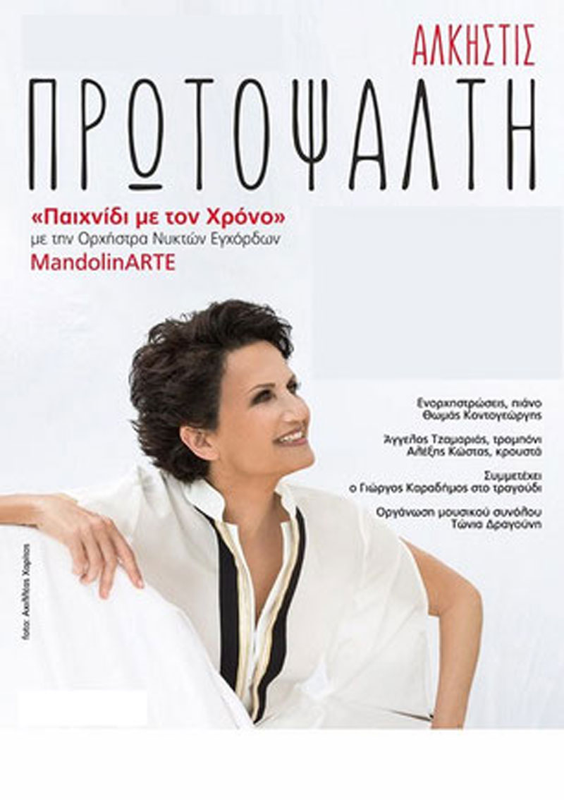 Μετά από έναν πολύ επιτυχημένο χειμώνα και τη θερμή ανταπόκριση του κοινού με 6 sold out εμφανίσεις στο Μέγαρο Μουσικής Αθηνών, καθώς και 3 sold out εμφανίσεις στο Μέγαρο Μουσικής Θεσσαλονίκης, το κοινό θα έχει την ευκαιρία να απολαύσει ξανά την Άλκηστη Πρωτοψάλτη που επιστρέφει για 2 ακόμα μοναδικές συναυλίες στο Θέατρο Μεσαιωνικής Τάφρου την Τετάρτη 24 και Πέμπτη 25 Αυγούστου σε αυτή την διαφορετική μουσική συνάντηση… με το χρόνο….