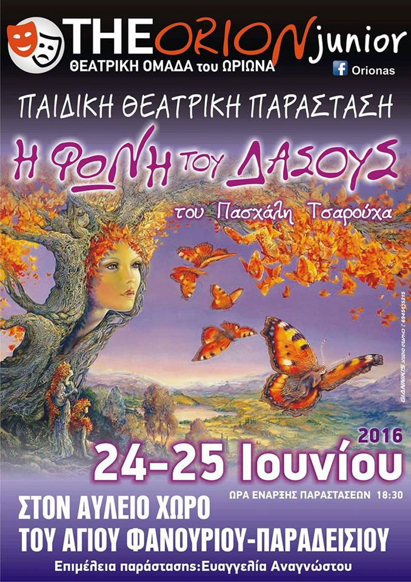 Με αφορμή την έντονη εκλογική δραστηριότητα των τελευταίων ετών, τα δέντρα, τα ζώα και τα λαχανικά κάνουν τη δική τους επανάσταση απέναντι στη βαρβαρότητα των ανθρώπων και τη σκληρή στάση και διαπλοκή των δικών τους αρχηγών, και προκηρύσσουν εκλογές!!!! Στις 24 και 25 Ιουνίου, στον αύλειο χώρο του αγίου Φανουρίου και ώρα 18:30 οι κάλπες θα ανοίξουν και η Φωνή του Δάσους θα δώσει το δικό της μήνυμα για ένα δικαιότερο και ελπιδοφόρο κόσμο!!!