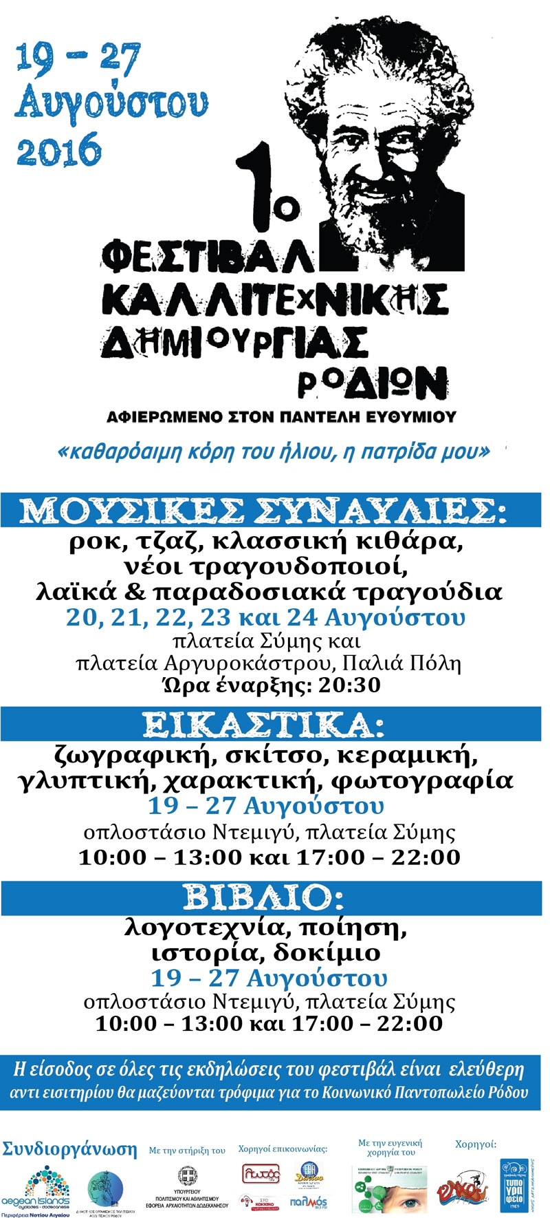 Το Φεστιβάλ είναι αφιερωμένο στον μεγάλο Ρόδιο ποιητή Παντελή Ευθυμίου που το αγκαλιάζει με τον στίχο του, «καθαρόαιμη κόρη του ήλιου, η πατρίδα μου»