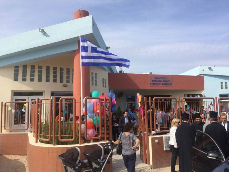 Παρουσία του Σεβασμιότατου Μητροπολίτη Ρόδου κ.κ Κύριλλου, του Δημάρχου Ρόδου κου Φώτη Χατζηδιάκου, του Προέδρου της Δημοτικής Κοινότητας Σορωνής κου Αντώνη Σαββάκη και εκπροσώπων των τοπικών και περιφερειακών αρχών, πραγματοποιήθηκαν την Πέμπτη 27 Οκτωβρίου του 2016 τα εγκαίνια του Βρεφονηπιακού Σταθμού Σορωνής, που εντάσσεται στη συνολική προσπάθεια που καταβάλει ο Δήμος Ρόδου για την ενίσχυση της φροντίδας των παιδιών, προσφέροντας σε αυτά και τις οικογένειες τους, άρτιο παιδαγωγικό και ασφαλές περιβάλλον, που αναμένεται να συμβάλει καθοριστικά στην δημιουργία σωστών βάσεων για την εξέλιξη τους.