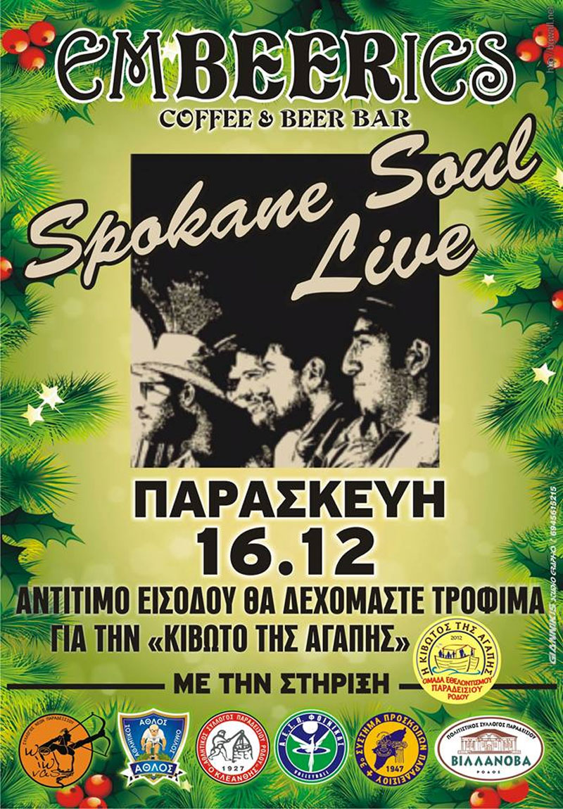 Ελάτε και εσείς να διασκεδάσετε μαζί μας την Παρασκευή 16 Δεκεμβρίου, από τις 21:00, στο “EmBEERies Coffee & Beer Bar” και ενισχύστε την προσπάθεια των συλλόγων και διασκεδάστε με τους ήχους των “Spokane Soul”…