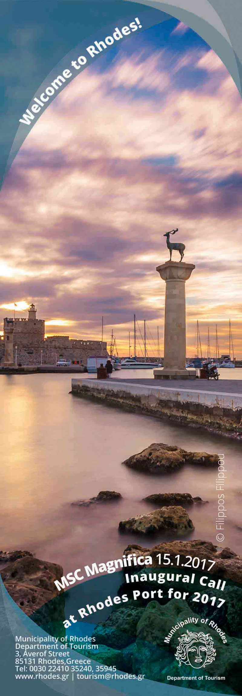 Τα στελέχη της Διεύθυνσης Τουρισμού και του Τμήματος Δημοσίων Σχέσεων και Τύπου του Δήμου Ρόδου μοίρασαν έντυπο υλικό σε όσους επιθυμούσαν να εκδράμουν στο νησί της Ρόδου και απάντησαν πρόθυμα σε όλες τις ερωτήσεις που τους έθεσαν οι επιβάτες του κρουαζιερόπλοιου σχετικά με τον προορισμό. Τους διανεμήθηκε επίσης αναμνηστικός σελιδοδείκτης πάνω στον οποίο αναγράφονταν τα εξής λόγια: «MSC Magnifica – 15.01.2017 – Inaugural Call at Rhodes Port for 2017: Welcome to Rhodes!» καθώς και το παραδοσιακό μελεκούνι.
