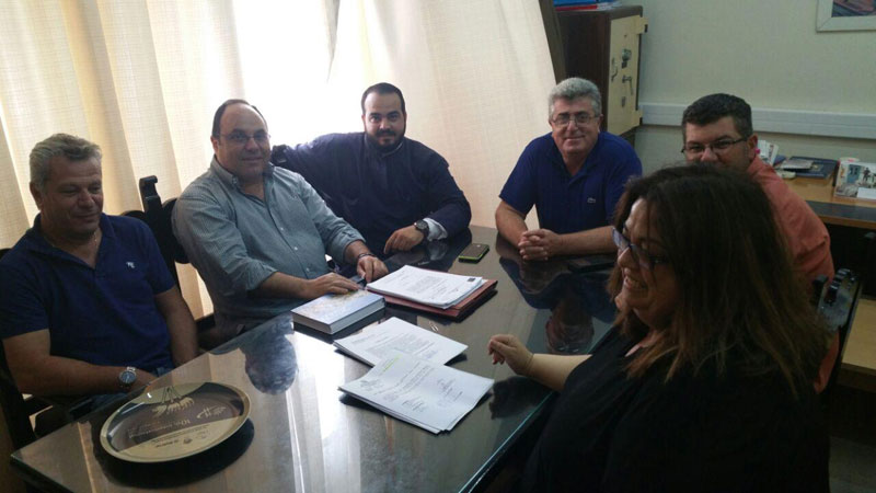 Αντικείμενο της συνάντησης ήταν η ενημέρωση της διοίκησης του Σωματείου για την πορεία του έργου της αντικατάστασης του χλοοτάπητα στο γήπεδο του Έμπωνα.