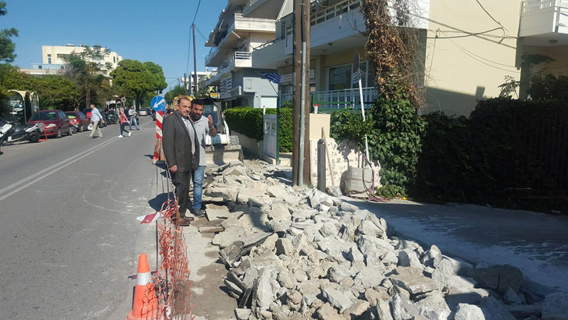 Ξεκίνησε και υλοποιείται με γοργούς ρυθμούς το έργο εκτέλεσης εργασιών για την ανακατασκευή παλαιών και κατασκευή νέων πεζοδρομίων στην πόλη της Ρόδου, με κύριο στόχο τη διασφάλιση της ομαλής κυκλοφορίας των πεζών. Ήδη βρίσκονται σε εξέλιξη παρεμβάσεις ανακατασκευής πεζοδρομίου, δικτύου ηλεκτροφωτισμού και αντικατάστασης ιστών και φωτιστικών σωμάτων σε τμήμα της οδού Θεμ. Σοφούλη (Διαγοριδών έως Παλαιολόγου).