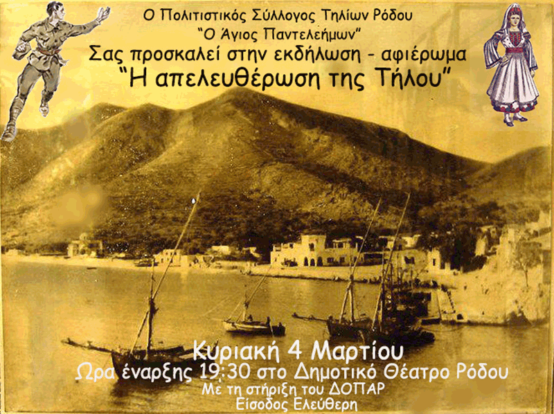 Ο Πολιτιστικός Σύλλογος Τηλίων Ρόδου «Ο Άγιος Παντελεήμων» τιμά την επέτειο της Απελευθέρωσης της Τήλου