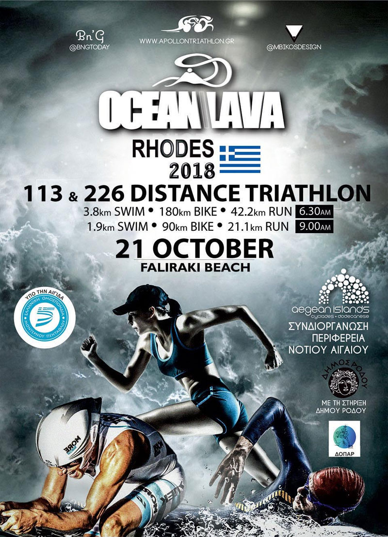 Η Περιφέρεια Νοτίου Αιγαίου σε συνεργασία με τον Σύλλογο Απόλλων Ρόδου, διοργανώνει τον αγώνα τριάθλου «OCEAN LAVA RHODES 2018 – 113 & 226».