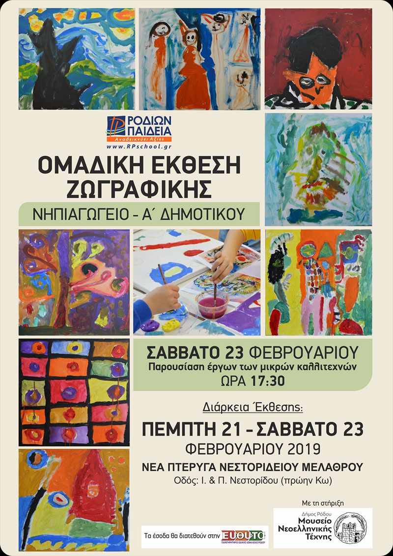 Στις 23 Φεβρουαρίου 2018, ώρα 17:30 τα παιδιά μας είναι έτοιμα να σας παρουσιάσουν τα έργα τους, γνωρίζοντας ότι τα έσοδα από την πώληση των πινάκων θα διατεθούν στο παρατηρητήριο οδικής ασφάλειας Ρόδου, «Ε.Υ.ΘΥ.Τ.Α.».