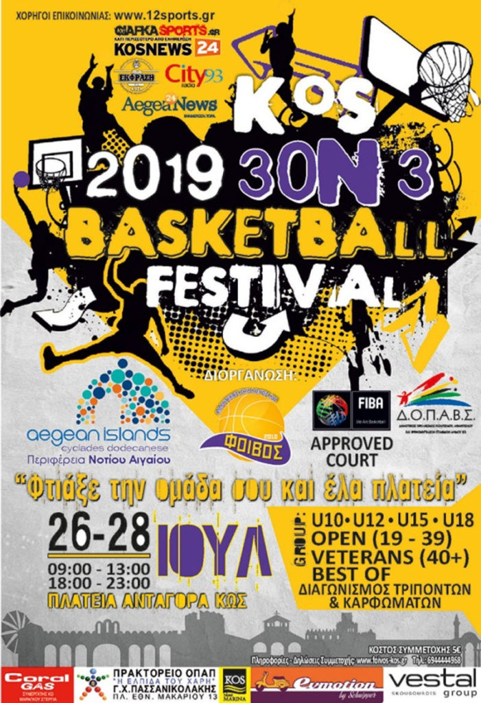 Η Περιφέρεια Νοτίου Αιγαίου συνδιοργανώνει το Τουρνουά Καλαθοσφαίρισης «Kos 3on3 Βasketball Festival»
