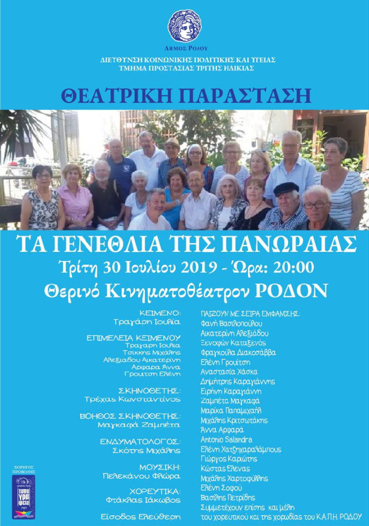 Παράσταση από τη θεατρική ομάδα του ΚΑΠΗ Δήμου Ρόδου «Τα γενέθλια της Πανωραίας»