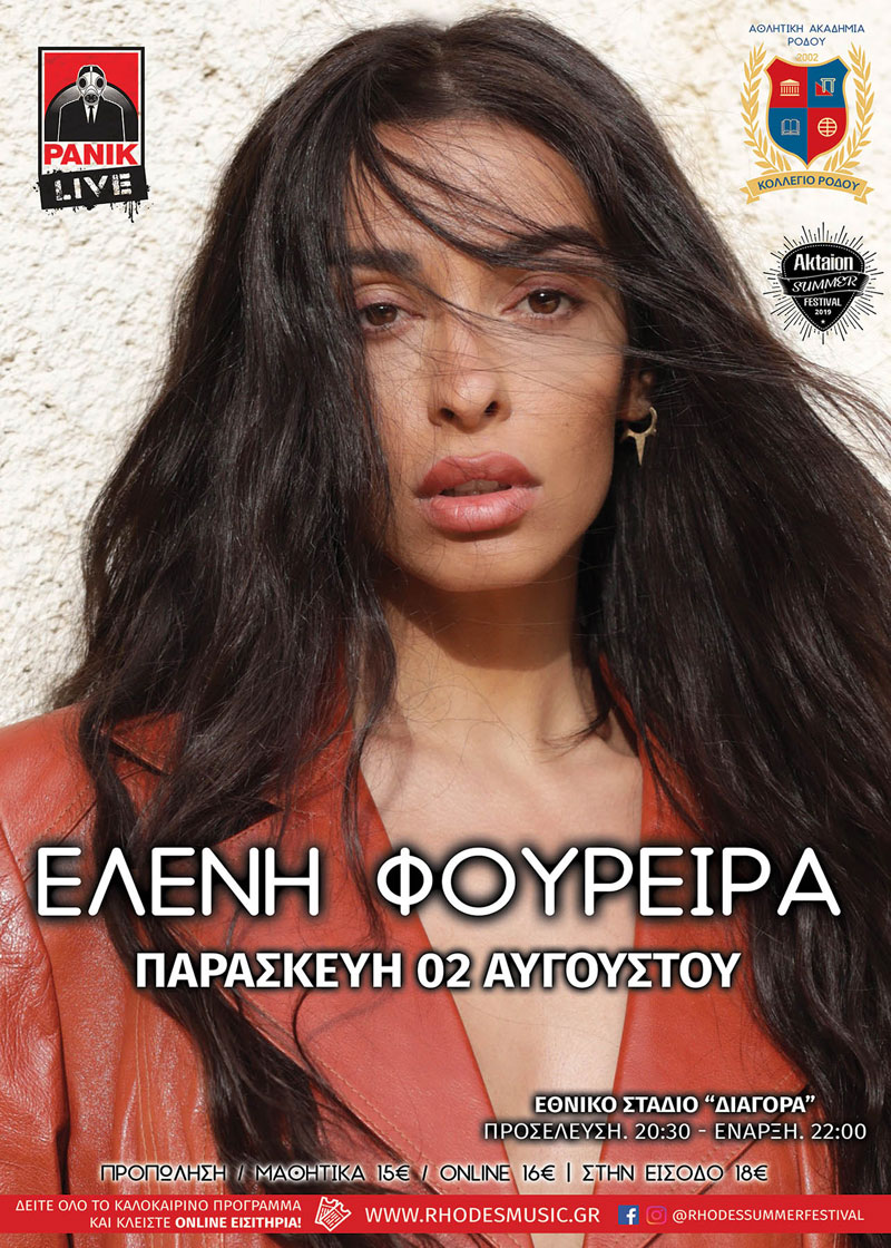 Η Αθλητική Ακαδημία Ρόδου,το Κολλέγιο Ρόδου και ο όμιλος Ακταίον με ιδιαίτερη χαρά ανακοινώνουν πως την Παρασκευή 2 Αυγούστου στις 22.00 μ.μ., η εκρηκτική Ελένη Φουρέιρα, θα βρίσκεται στο νησί της Ρόδου για να μας παρασύρει και να μας ξεσηκώσει με τις απίστευτες μουσικές και χορευτικές της ικανότητες βάζοντας φωτιά στο κέφι. Μαζί της δυο πολύ ταλαντούχα αγόρια της μουσικής σκηνής της χώρας μας,ο Στέλιος Λεγάκης και ο Oge, σ αυτή τη μοναδική συναυλία που θα μείνει αξέχαστη στο μουσικό κοινό της Ρόδου!!Από αυτό το γεγονός δεν πρέπει να λείψει κανείς!!!Η προπώληση έχει ήδη ξεκινήσει ….
