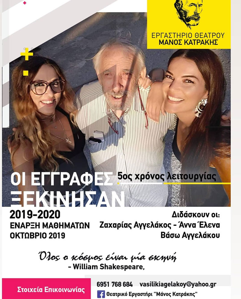 Άρχισαν οι εγγραφές στο εργαστήρι θεάτρου Μάνος Κατράκης για την περίοδο 2019- 2020