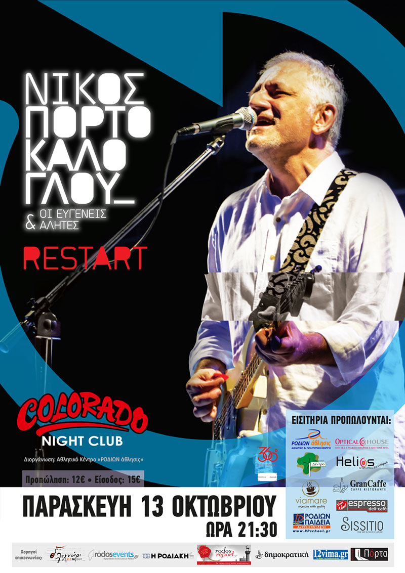 Στη σκηνή του «Colorado» θα βρεθεί για μία και μοναδική εμφάνιση, τo Σάββατο 30 Νοεμβρίου, ο Νίκος Πορτοκάλογλου.