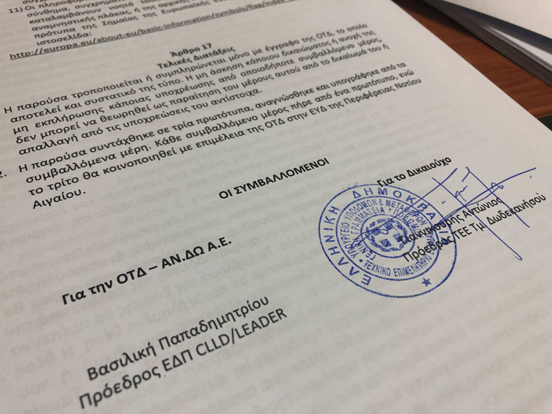 Την σύμβαση υλοποίησης έργου προϋπολογισμού 118.000€ υπέγραψε ο Πρόεδρος του ΤΕΕ Δωδεκανήσου κ. Αντώνης Γιαννικουρής την Πέμπτη στα γραφεία της Αναπτυξιακής Δωδεκανήσου (ΑΝ.ΔΩ. ΑΕ), με θέμα: «Ανάδειξη Βιομηχανικής Κληρονομιάς Νομού Δωδεκανήσου», στην Δημοτική Κοινότητα Ρόδου της Δημοτικής Ενότητας Ρόδου του Δήμου Ρόδου που εντάσσεται στο Μέτρο 19, Υπομέτρο 19.2 «Τοπική Ανάπτυξη με πρωτοβουλία Τοπικών Κοινοτήτων, (ΤΑΠΤοΚ) του Προγράμματος Αγροτικής Ανάπτυξης 2014-2020, για παρεμβάσεις Δημόσιου χαρακτήρα», Υποδράση 19.2.4.5 «Στήριξη για μελέτες, υπηρεσίες και επενδύσεις, που συνδέονται με τον πολιτισμό, με τη διατήρηση, αποκατάσταση και αναβάθμιση της πολιτιστικής και φυσικής κληρονομιάς των χωριών, των αγροτικών τοπίων και τόπων με υψηλή φυσική αξία, συμπεριλαμβανομένων των σχετικών κοινωνικο-οικονομικών πτυχών, καθώς και δράσεις περιβαλλοντικής ευαισθητοποίησης (συμπεριλάμβανομένων πολιτιστικών/συνεδριακών κέντρων, μουσείων, πολιτιστικών χαρακτηριστικών της υπαίθρου – μύλοι, γέφυρες κλπ)» του τοπικού προγράμματος CLLD/LEADER, με τα ειδικότερα στοιχεία και χαρακτηριστικά που περιγράφονται αναλυτικά στην εγκεκριμένη από την ΟΤΔ αίτηση ενίσχυσης. Το έργο θα ολοκληρωθεί μέχρι τις 31-12-2021 (εντός 29 μηνών περίπου από την ένταξη) και σύμφωνα με το χρονοδιάγραμμα υλοποίησης που έχει υπογραφεί.