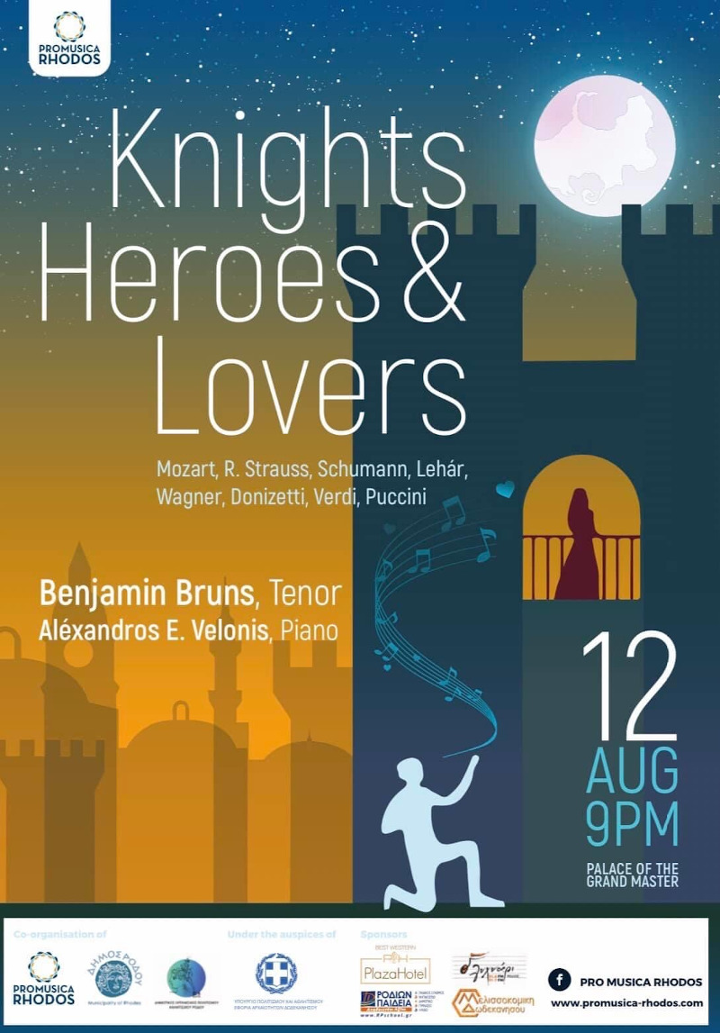 Ένα μαγευτικό Ρεσιτάλ Κλασικού τραγουδιού με τον σπουδαίο και καταξιωμένο τενόρο Benjamin Bruns και τον Ρόδιο πιανίστα και μαέστρο Αλέξανδρο Βελώνη θα έχουν την χαρά να απολαύσουν όσοι βρεθούν σήμερα 12 Αυγούστου 2020 και ώρα 9 μ.μ. στο Παλάτι του Μεγάλου Μαγίστρου.