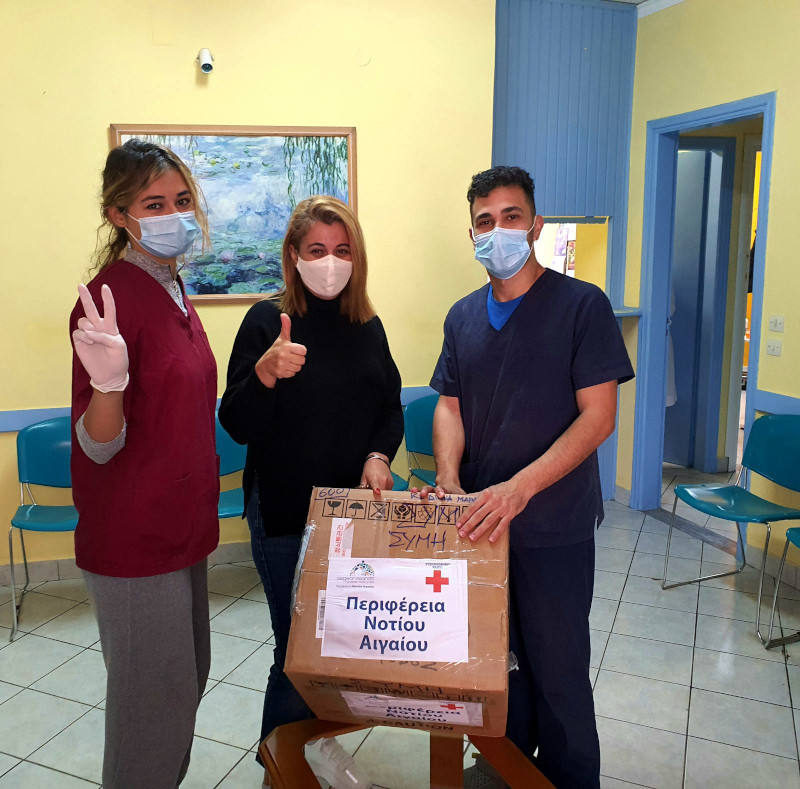 Σειρά στο πρόγραμμα των αποστολών είχε η Σύμη, όπου παραδόθηκαν αρμοδίως 600 τεστ ταχείας ανίχνευσης αντιγόνου COVID-19 (rapid tests).