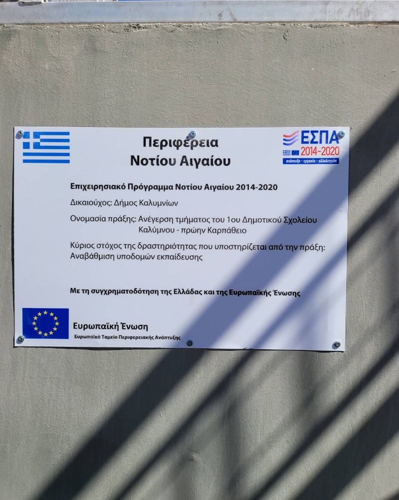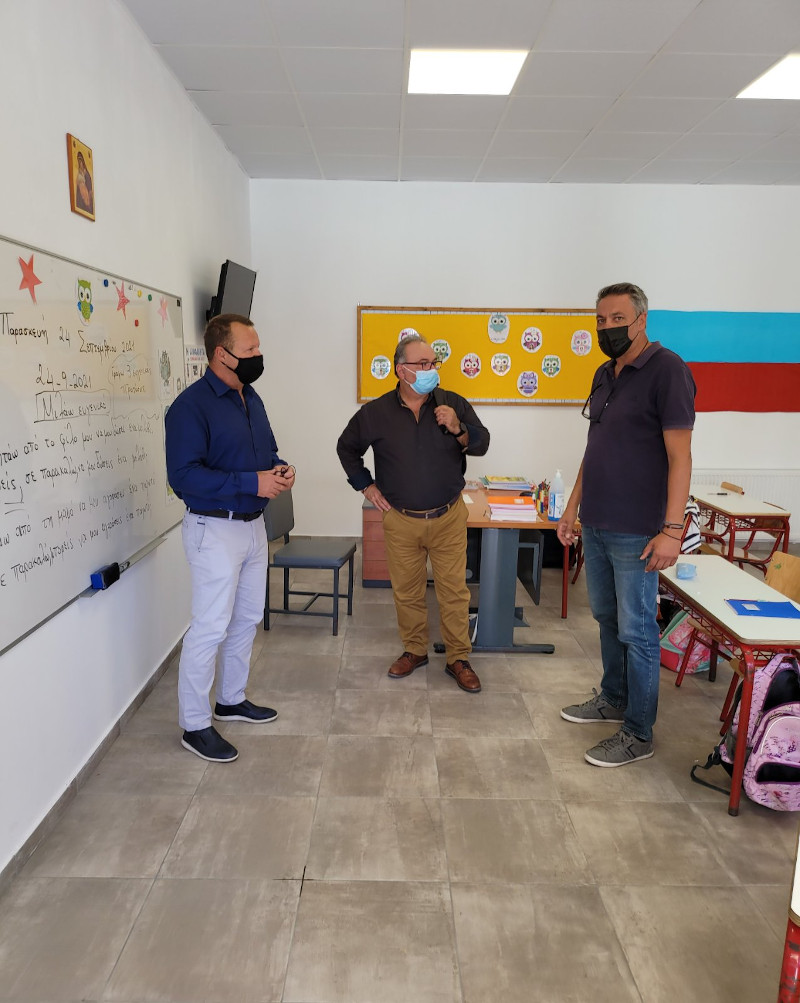 Ακολούθησε επίσκεψη στο 1ο δημοτικό σχολείο της πόλεως Καλύμνου, το οποίο κατασκευάστηκε από τους ευρωπαϊκούς πόρους της Περιφέρειας και ήδη βρίσκεται στο 2ο έτος λειτουργίας του. Αμέσως μετά, επισκέφθηκαν τον βρεφονηπιακό σταθμό της πόλης Καλυμνίων, η κατασκευή του οποίου ολοκληρώθηκε πρόσφατα, επίσης από τους ευρωπαϊκούς πόρους της Περιφέρειας.