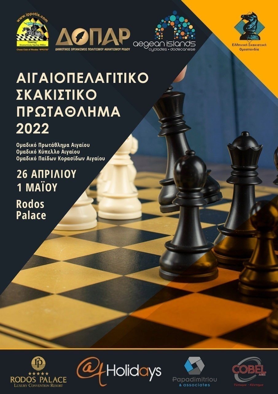 Ο Σκακιστικός Όμιλος Ρόδου «ΙΠΠΟΤΗΣ» συνδιοργανώνει με τον Δημοτικό Οργανισμό Πολιτισμού Αθλητισμού Ρόδου(ΔΟΠΑΡ) και την Περιφέρεια Νοτίου Αιγαίου υπό την αιγίδα της Ελληνικής Σκακιστικής Ομοσπονδίας το Αιγαιοπελαγίτικο Σκακιστικό Πρωτάθλημα του 2022 από 26 Απριλίου μέχρι 01 Μαΐου στο Rodos Palace. Τα Πρωταθλήματα αφορά το αναπτυξιακό σκάκι και είναι ετήσια προκριματική διοργάνωση της Τοπικής Επιτροπής Σκακιστικών […]