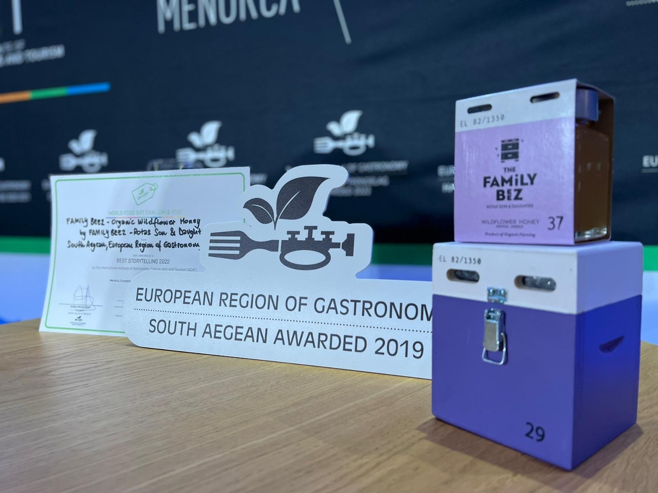 Το βραβείο στην κατηγορία «Best Story Telling» κέρδισε, εκπροσωπώντας την Περιφέρεια Νοτίου Αιγαίου-Ευρωπαϊκή Περιφέρεια Γαστρονομίας 2019, το προϊόν FAMiLY BEEZ από την Σέριφο (οργανικό μέλι σε συσκευασία δώρου) κατά την Τελετή Απονομής World Food Gift Challenge, που πραγματοποιήθηκε χθες, 7 Απριλίου, στο Centre Artesanal της Μινόρκα.