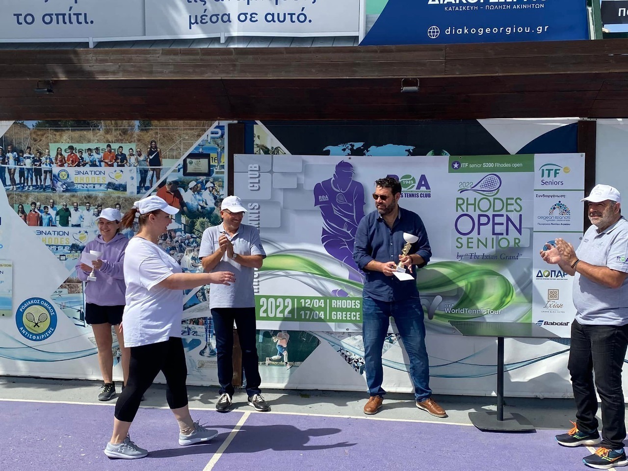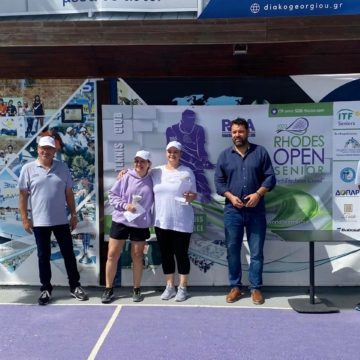 Χθες ολοκληρώθηκε με τα τελευταία παιχνίδια το I.T.F. Senior S200 Rhodes Open by The Ixian Grand All&Suites. Προχθές διεξήχθησαν οι περισσότεροι τελικοί και στη συνέχεια έγιναν οι απονομές στις εγκαταστάσεις του Ρ.Ο.Α. Το τουρνουά διοργανώνεται από τον Ροδιακό Όμιλο Αντισφαίρισης σε συνεργασία με την Περιφέρεια Νοτίου Αιγαίου, τον Δ.Ο.Π.Α.Ρ. και την Ε.Φ.Ο.Α. Όλα τα χθεσινά αποτελέσματα: