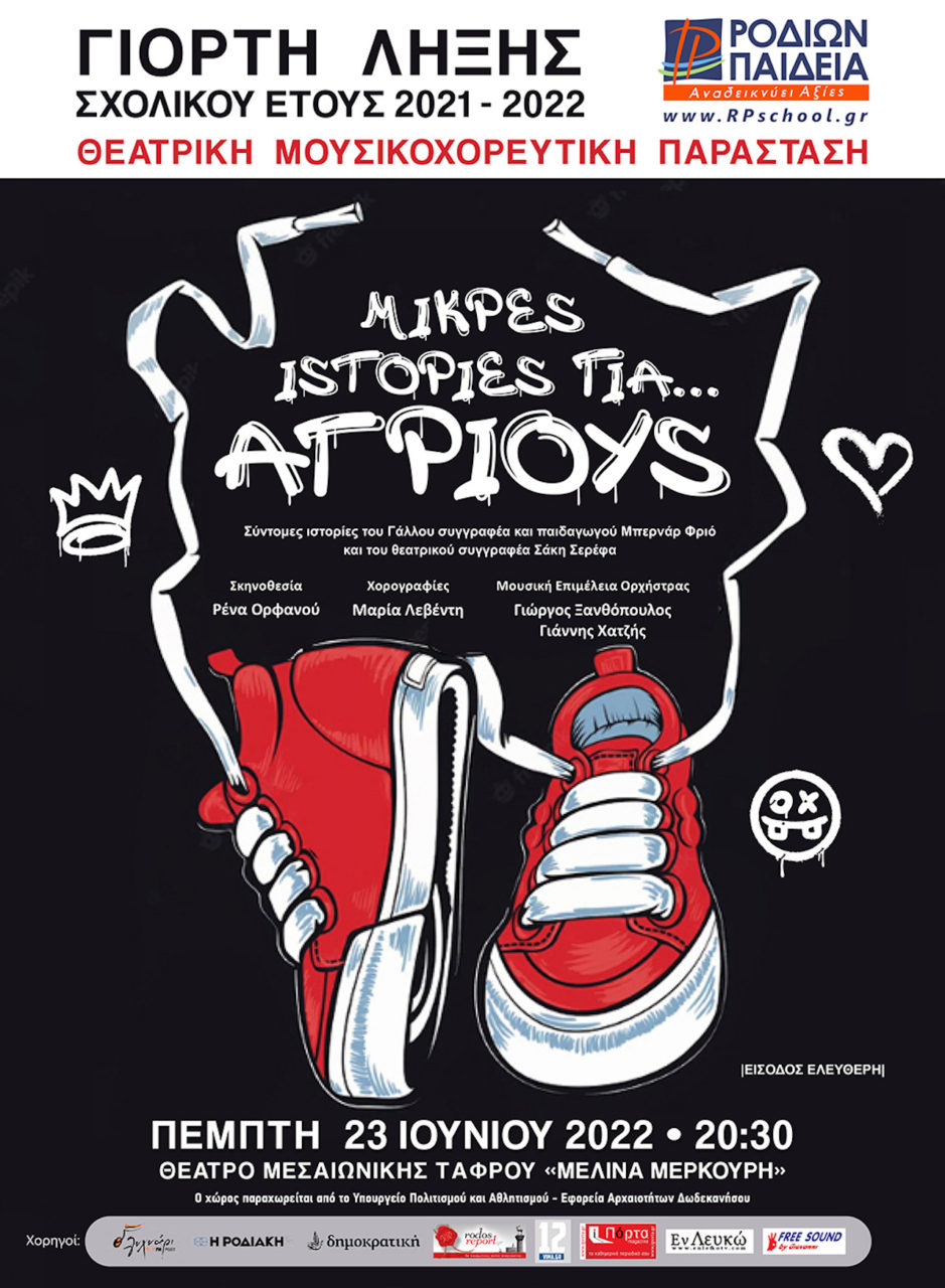 Αποχαιρετούμε τη φετινή σχολική χρονιά και καλοσωρίζουμε το καλοκαίρι με μια μεγάλη γιορτή που θα πραγματοποιηθεί στο Θέατρο της Μεσαιωνικής Τάφρου «Μελίνα Μερκούρη», την Πέμπτη 23 Ιουνίου 2022, στις 8.30 μ.μ. Φέτος, η καλλιτεχνική ομάδα του σχολείου μας επέλεξε να ανεβάσει μια Θεατρική-Μουσικοχορευτική παράσταση με πρωταγωνιστές παιδιά, στηριγμένη στη σύνθεση πάνω σε ιστορίες του Frio […]