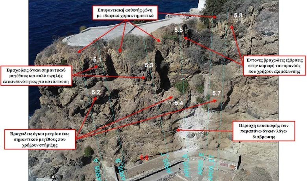 Στην τελική υποβολή του ερευνητικού προγράμματος περιγράφονται αναλυτικά τα προτεινόμενα μέτρα προστασίας των πρανών του λόφου του Οξού, διακριτά και στοχευμένα ανά περιοχή του λόφου. Τα μέτρα αυτά είναι κυρίως ενεργητικής φύσεως και στοχεύουν στην αποτροπή της εκδήλωσης αστοχιών με συγκράτηση των επισφαλών τεμαχών βράχου επιτόπου στο πρανές. Τούτο κρίνεται αναγκαίο λόγω της ύπαρξης στην κορυφή του λόφου της Ιεράς Μονής, η προστασία της οποίας αποτελεί βασικό σκοπό των αναγκαίων μέτρων.