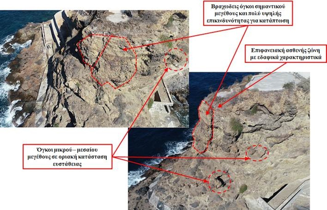 Τα προβλήματα ευστάθειας στην περιοχή μελέτης αναφέρονται και εκδηλώνονται εδώ και πολλές δεκαετίες τόσο στον χώρο κατάντη της βόρειας όψης των κτισμάτων της Ιεράς Μονής της Παναγίας Σπηλιανής, όσο και περιμετρικά του λόφου, κατά μήκος του μονοπατιού που οδηγεί προς την παρακείμενη παραλία των Χοχλάκων, της πίσω όψης της Μονής και των υφιστάμενων τοίχων του παλιού κάστρου.