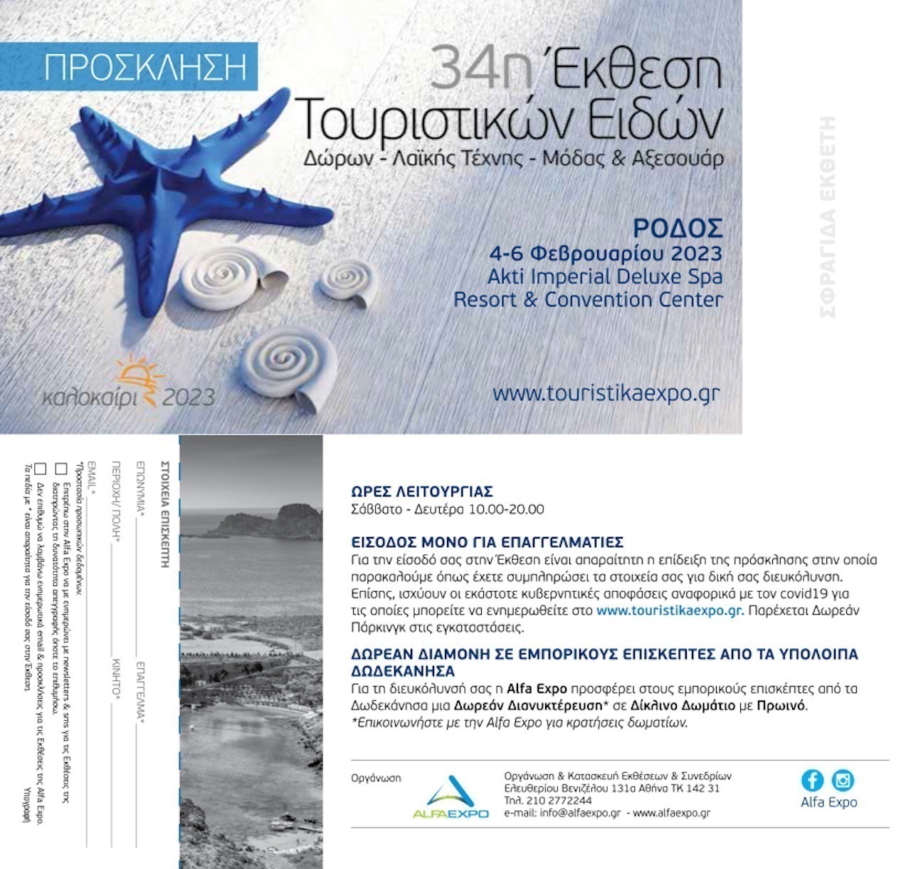 Πρόσκληση για την 34η Έκθεση Τουριστικών Ειδών, Δώρων, Λαϊκής Τέχνης, Μόδας & Αξεσουάρ της Ρόδου