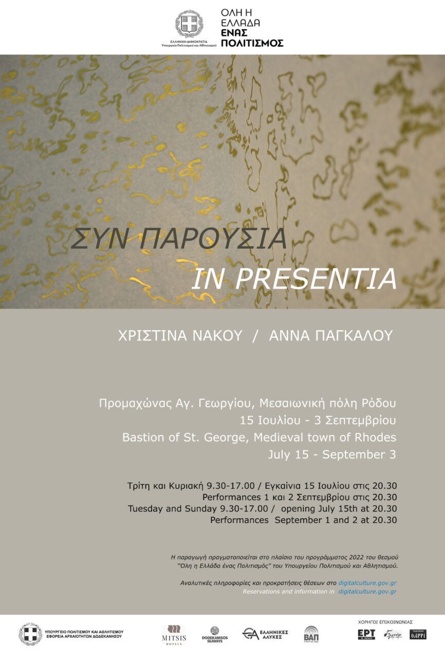 To Υπουργείο Πολιτισμού και Αθλητισμού και η Εφορεία Αρχαιοτήτων Δωδεκανήσου, σας προσκαλούν στις δύο ηχητικές performance που θα επιτελέσει η Άννα Παγκάλου στις 1 και 2 Σεπτεμβρίου 2022, στις 20:30 στο χώρο του Προμαχώνα του Αγίου Γεωργίου στη Μεσαιωνική Πόλη της Ρόδου. Παράλληλα, τις ημέρες αυτές, από τις 10:00 έως τις 18:00, στον ίδιο χώρο θα βρίσκονται […]