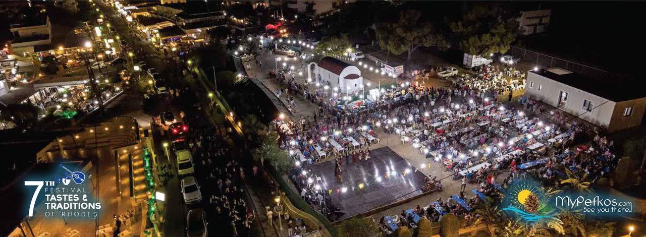 Με μεγάλη επιτυχία διοργανώθηκε την Κυριακή 18 Σεπτεμβρίου στην κεντρική πλατεία των Πευκών το 7ο κατά σειρά Γαστρονομικό Φεστιβάλ Γεύσης & Παράδοσης Ρόδου από την ΚΟΙΝ.Σ.ΕΠ. MyPefkos. Πάνω από 2000 επισκέπτες, ως επί τω πλείστων τουρίστες που πραγματοποιούν αυτό το διάστημα τις διακοπές τους στη Ρόδο αλλά και συνάνθρωποί μας από τα γύρω χωριά και την πόλη, έζησαν μια συναρπαστική διαφορετική εμπειρία διασκέδασης γεμάτη γεύσεις, παράδοση, πολιτισμό αλλά και δρώμενων που κατάφεραν να ξεσηκώσουν τους παρευρισκόμενους και να κρατήσουν αμείωτο το ενδιαφέρον και το κέφι μέχρι αργά. Η ΚΟΙΝ.Σ.ΕΠ. MyPefkos, συνεργάστηκε με την Εκκλησιαστική επιτροπή της Λίνδου, τους ντόπιους επιχειρηματίες αλλά και μια ομάδα 20 εθελοντών καλύπτοντας την ασφάλεια, καθαριότητα και την τάξη κατά την διάρκεια της εκδήλωσης όπου τελέστηκε και ο Εσπερινός για χάρη του Αγ. Ευσταθίου.