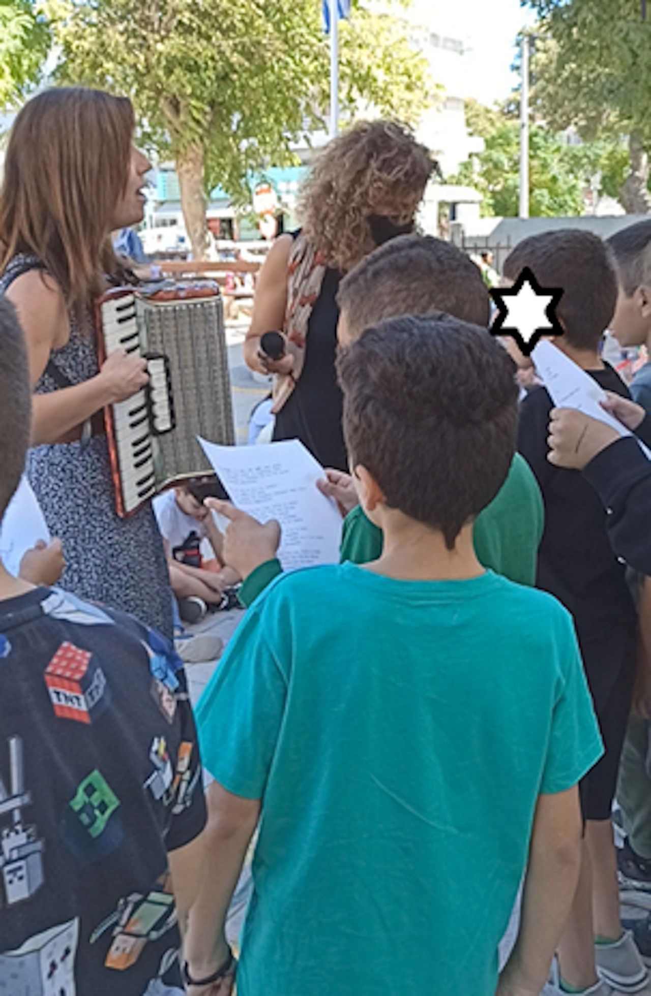 Η Γ’ και η Δ’ τραγούδησαν με τη συνοδεία του ακορντεόν που έπαιζε η μουσικός του Σχολείου κ. Λεφάκη το τραγούδι: