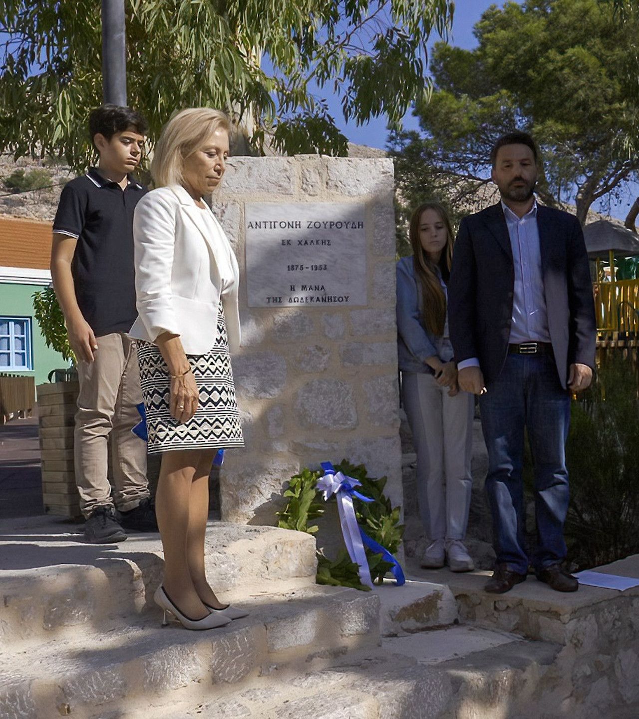 Ακολούθησαν τα «αποκαλυπτήρια» του μνημείου από τον Δήμαρχο κ. Φραγκάκη και την πρόεδρο κα Μοσχή και ολοκληρώθηκε η τιμητική και συγκινητική τελετή, με κατάθεση στεφάνου και τήρηση 1 λεπτού σιγής, «τιμής και μνήμης ένεκεν» υπέρ της Αντιγόνης Ζουρούδη!