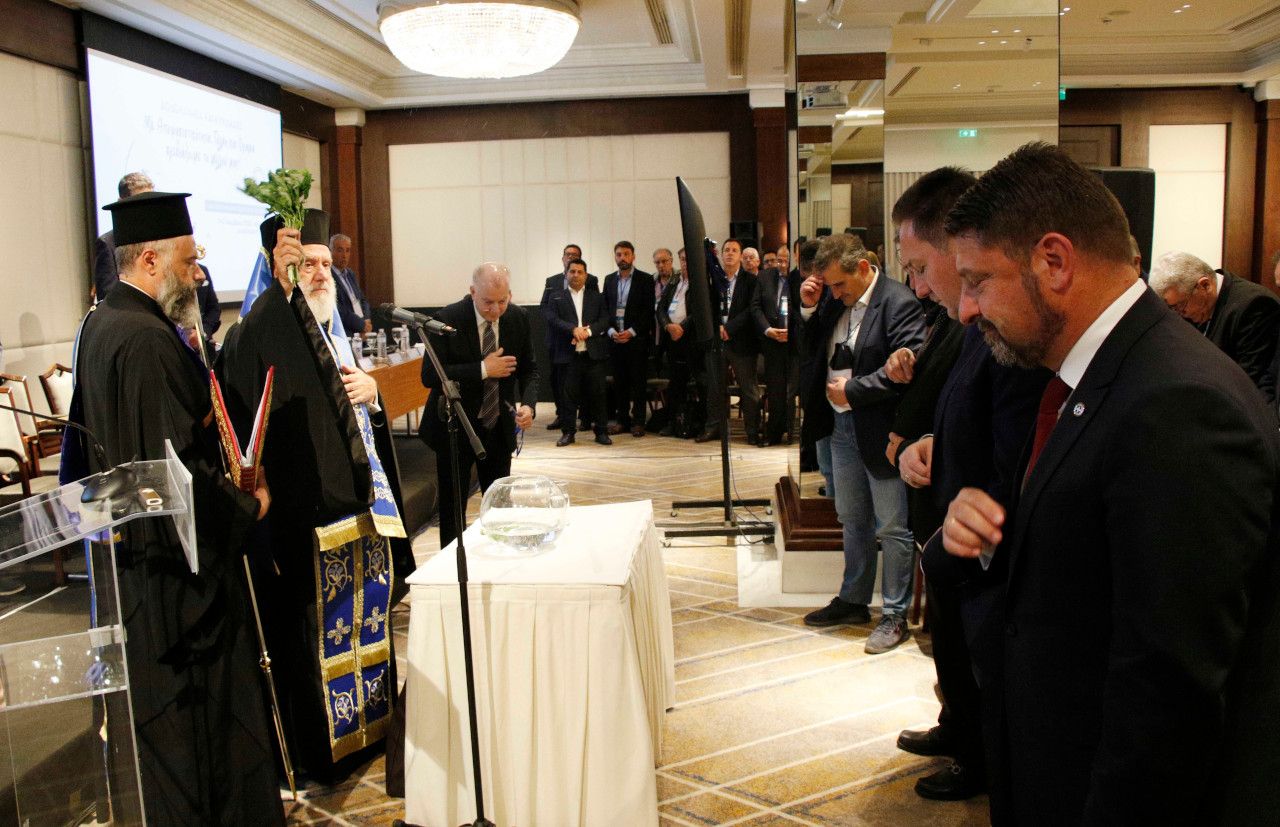Οι Δήμαρχοι και οι Δημοτικοί Σύμβουλοι, των 34 νησιωτικών Δήμων, των Κυκλάδων και των Δωδεκανήσων, που αποτελούμε το σώμα, της Γενικής Συνέλευσης της ΠΕΔ Νοτίου Αιγαίου, ξεκινάμε το Συνέδριο αυτό, με τις ευλογίες της Ελληνικής Εκκλησίας, δια του Σεβασμιότατου Μητροπολίτου Δωρόθεου, πιστοί στην αρχή της παράδοσής μας, που λέει: «Εκ Θεού άρξασθαι».