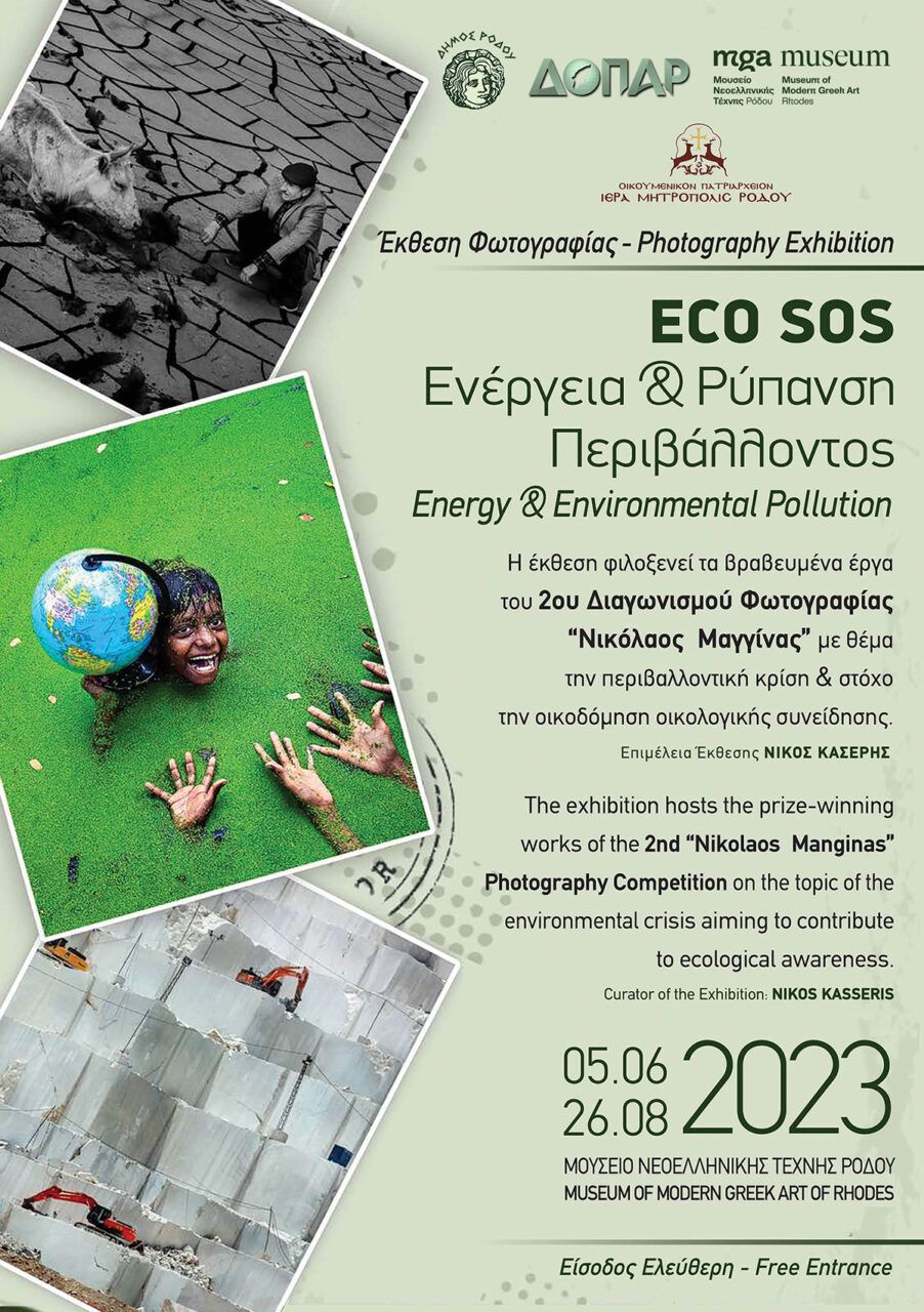 Η δεύτερη έκθεση “ECO SOS – Ενέργεια και Ρύπανση Περιβάλλοντος” φιλοξενεί τα βραβευμένα έργα του 2ου Διαγωνισμού Φωτογραφίας “Νικόλαος Μαγγίνας”, ο οποίος έλαβε χώρα τον περασμένο Δεκέμβριο στην Κωνσταντινούπολη, σε διοργάνωση της Κοινότητας Νεοχωρίου (Yeniköy) στη μνήμη του γνωστού Ρωμιού φωτογράφου. Οι συμμετέχοντες στον διαγωνισμό καλέστηκαν να παρουσιάσουν μέσα από το φακό τους την περιβαλλοντική κρίση που διέρχεται ο πλανήτης και απειλεί το οικοσύστημα, καθώς ο στόχος του διαγωνισμού ήταν να συμβάλλει στην ενημέρωση των πολιτών, την κινητοποίηση των κυβερνήσεων και την αφύπνιση των ανθρώπων, οικοδομώντας οικολογική συνείδηση. Στο διαγωνισμό συμμετείχαν 307 φωτογράφοι από 8 χώρες, με συνολικά 1068 έργα. Η τελετή απονομής έγινε στο μουσείο Αρά Γκιουλέρ, παρουσία του Οικουμενικού Πατριάρχη Βαρθολομαίου. Η αξιολόγηση των έργων έγινε από την Κριτική Επιτροπή, η οποία απαρτίστηκε από έμπειρους και καταξιωμένους φωτογράφους της Ελλάδας και της Τουρκίας, μεταξύ των οποίων και ο Νίκος Κασέρης. Στα εγκαίνια θα παραστούν οι φωτογράφοι της έκθεσης ΠΑΡΑΣΚΕΥΗ – ΣΑΒΒΑΤΟ – ΚΥΡΙΑΚΗ Alberto Modiano, Berge Arabian, Emine Ülkerim και Mıgırdiç Arzivyan, καθώς και ο πρόεδρος της Κοινότητας Νεοχωρίου Κωνσταντινουπόλεως και Άρχων του Οικουμενικού Πατριαρχείου, κ. Λάκης Βίγκας, εμπνευστής και συντονιστής της αρχικής έκθεσης και του ετήσιου διαγωνισμού στη μνήμη του Νίκου Μαγγίνα.
