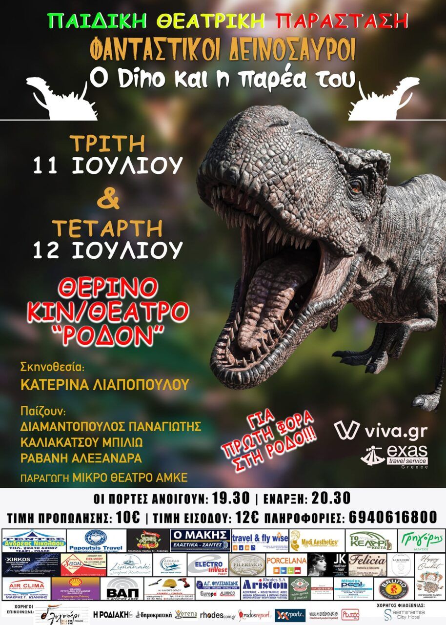 Ξεκίνησε η προπώληση για την διαδραστική παιδική παράσταση “Φανταστικοί Δεινόσαυροι” Ο Dino και η παρέα του