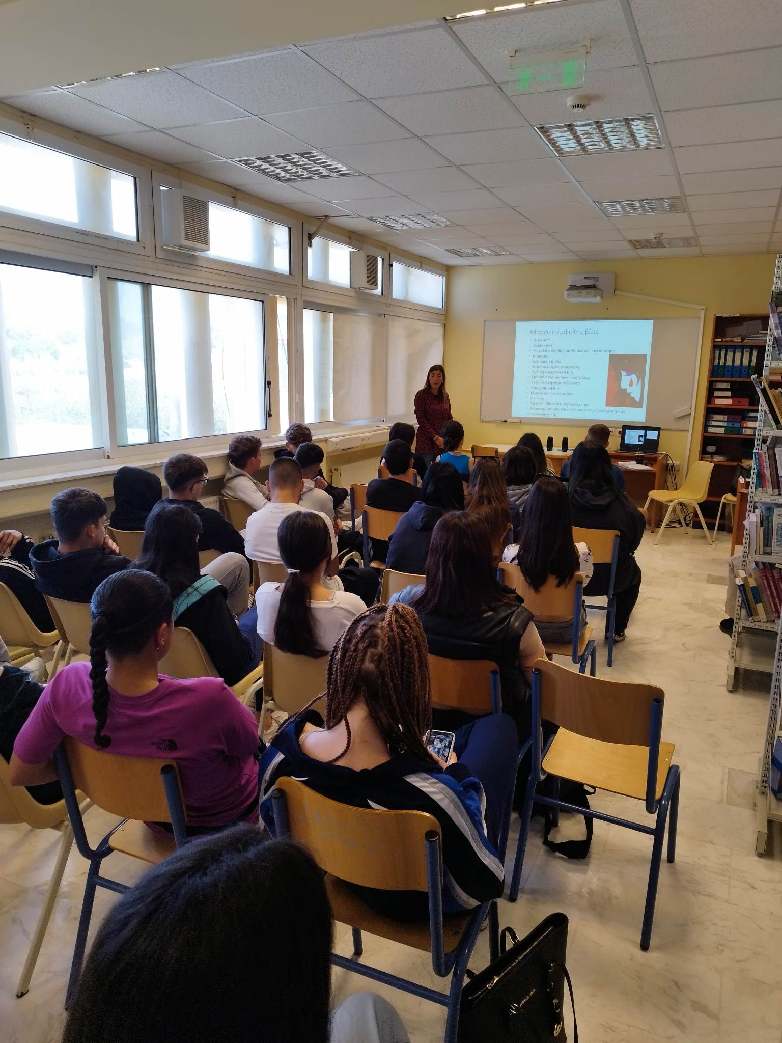 Συγκεκριμένα, στις 25 Απριλίου 2023 πραγματοποιήθηκε η πρώτη ομιλία προς τους/τις μαθητές/τριες των τμημάτων της Γ΄ τάξης του 6ου Γυμνασίου Ρόδου για την έμφυλη και ενδοοικογενειακή βία από την Κοινωνιολόγο και τη Νομική Σύμβουλο του Συμβουλευτικού Κέντρου Γυναικών. Ακολούθησαν δράσεις ευαισθητοποίησης και πρόληψης: στις 3 Μαΐου 2023 σε μαθητές και μαθήτριες του 2ου ΕΠΑΛ Ρόδου από την Ψυχολόγο και Κοινωνιολόγο, στις 5 Μαΐου 2023 σε μαθητές και μαθήτριες του 2ου ΕΠΑΛ Ρόδου από την Νομική Σύμβουλο και την Κοινωνική Λειτουργό, στις 8 Μαΐου 2023 σε μαθητές/μαθήτριες του 1ου ΕΠΑΛ Ρόδου από την Ψυχολόγο και τη Νομική Σύμβουλο και στις 10 Μαΐου 2023 στο ίδιο σχολείο από την Κοινωνιολόγο και την Ψυχολόγο. Οι δράσεις στα σχολεία ολοκληρώθηκαν με την ομιλία που πραγματοποιήθηκε στις 15 Μαΐου 2023 σε μαθητές και μαθήτριες του Γυμνασίου Αφάντου, από την Κοινωνιολόγο και την Κοινωνική Λειτουργό του Συμβουλευτικού Κέντρου Γυναικών.