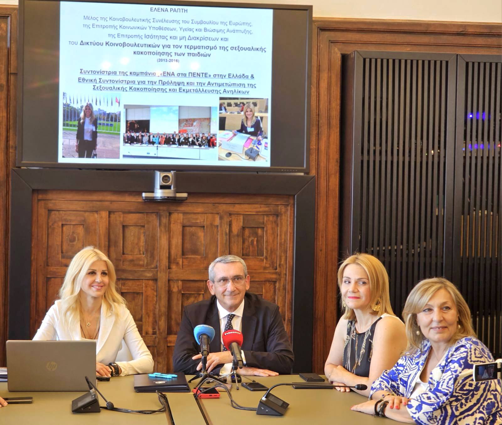 Υπεγράφη σήμερα από τον Περιφερειάρχη Νοτίου Αιγαίου, Γιώργο Χατζημάρκο, η συμμετοχή της Περιφέρειας Νοτίου Αιγαίου στην καμπάνια «ΕΝΑ στα ΠΕΝΤΕ» του Συμβουλίου της Ευρώπης για την πρόληψη της παιδικής σεξουαλικής κακοποίησης, παρουσία συντονίστριας της καμπάνιας «ΕΝΑ στα ΠΕΝΤΕ» του Συμβουλίου της Ευρώπης στην Ελλάδα και Υφυπουργού Τουρισμού, κ. Έλενας Ράπτη, με τη ευκαιρία της πρώτης της επίσκεψης στο νησί της Ρόδου, υπό την ιδιότητα της Υφυπουργού της κυβέρνησης.