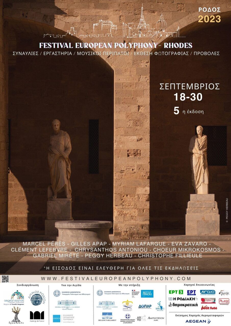 Στο πλαίσιο του 5ου Φεστιβάλ Ευρωπαϊκής Πολυφωνίας από την Δευτέρα 18 Σεπτεμβρίου, θα φιλοξενείται στο Κατάλυμα της Γαλλίας, η έκθεση φωτογραφίας με τίτλο « Συρροές/ Confluence(s)» των Γάλλων φωτογράφων Peggy Herbeau και Christophe Fillieule. Η έκθεση είναι ένας ποιητικός περίπατος της Ρόδου, μια μαρτυρία από τα ίχνη της ιστορίας σε συνδυασμό με τη φυσική ομορφιά […]