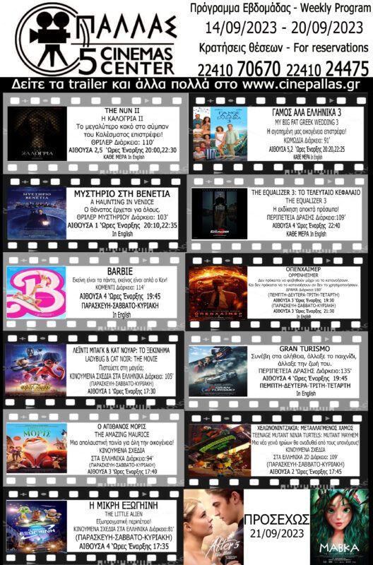 Πρόγραμμα εβδομάδος 14/09/23-20/09/23
