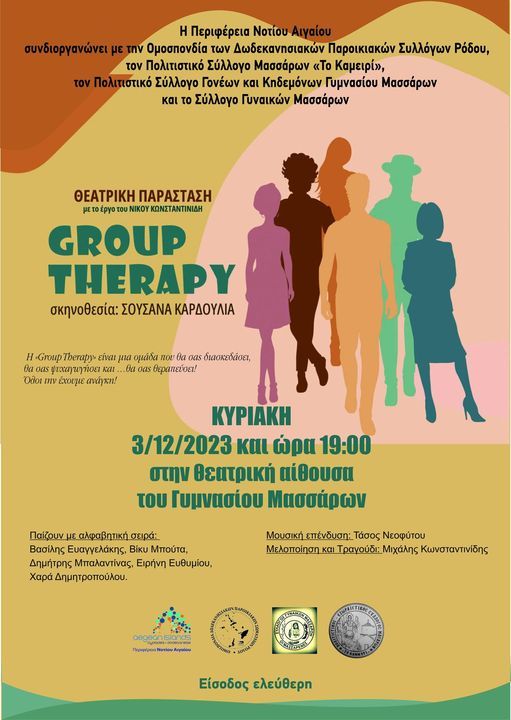 ΘΕΑΤΡΙΚΗ ΠΑΡΑΣΤΑΣΗ “GROUP THERAPY” ΣΤΟ ΧΩΡΙΟ ΜΑΣΣΑΡΗ ΤΗΝ ΚΥΡΙΑΚΗ 3/12/2023 7μ.μ. ΣΤΗΝ ΑΙΘΟΥΣΑ ΤΟΥ ΓΥΜΝΑΣΙΟΥ Η Περιφέρεια Νοτίου Αιγαίου συνδιοργανώνει με την Ομοσπονδία των Δωδεκανησιακών Παροικιακών Συλλόγων Ρόδου, τον Πολιτιστικό Σύλλογο Μασσάρων «Το Καμειρί», το Σύλλογο Γυναικών Μασσάρων και τον Σύλλογο Γονέων και Κηδεμόνων Γυμνασίου Μασσάρων Θεατρική παράσταση με το έργο του ΝΙΚΟΥ ΚΩΝΣΤΑΝΤΙΝΙΔΗ «GROUP […]