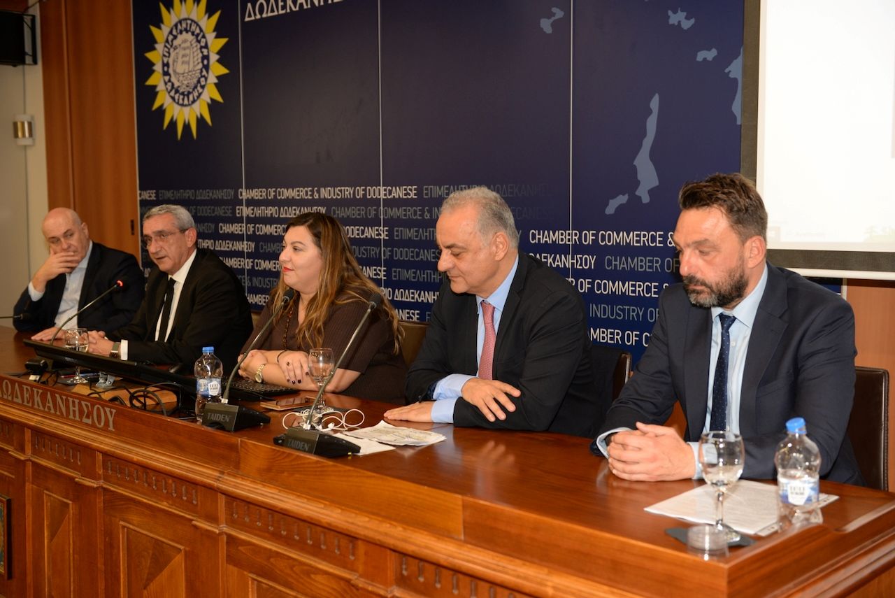 Τέλος, το απόγευμα της ίδιας μέρας, έλαβε χώρα στην αίθουσα συνεδριάσεων «Γ.Β. Καραγιάννης» του Επιμελητηρίου Δωδεκανήσου, ανοικτή εκδήλωση ενημέρωσης και συζήτησης με τους πολίτες με θέμα «Η Ευρωπαϊκή Ένωση στην Περιφέρεια Νοτίου Αιγαίου». Η εκδήλωση περιλάμβανε τρεις θεματικές ενότητες:
