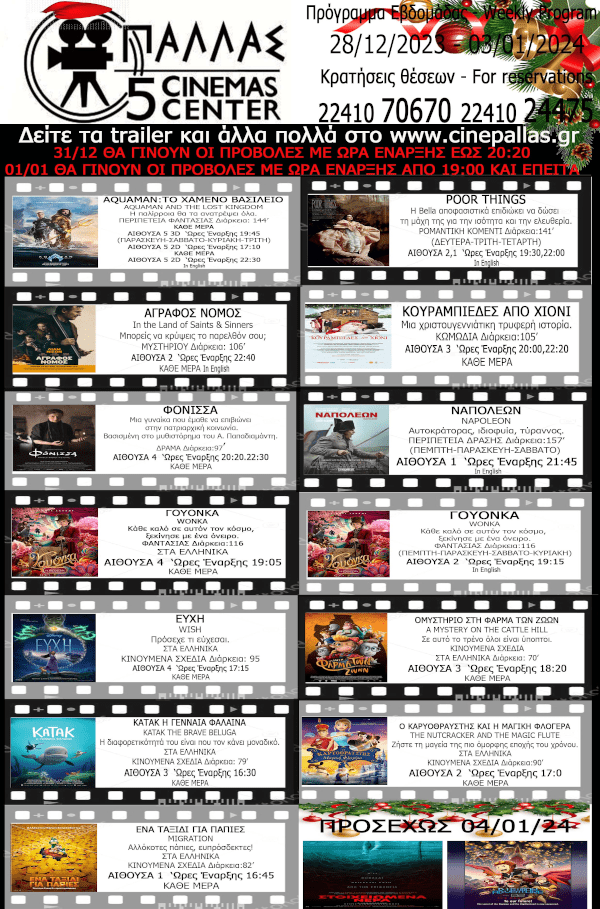 Πρόγραμμα εβδομάδας 28/12/23-03/01/24