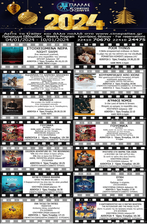 Πρόγραμμα εβδομάδας 04/01/24-10/01/24