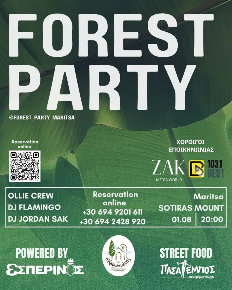 Παρασκευή, 01 Αυγούστου και οι επιλογές μας πολλές, με το Forrest Party, την μεγάλη εκδήλωση για την αιμοδοσία, και φυσικά τον σπουδαίο Βασίλη Παπακωνσταντίνου.