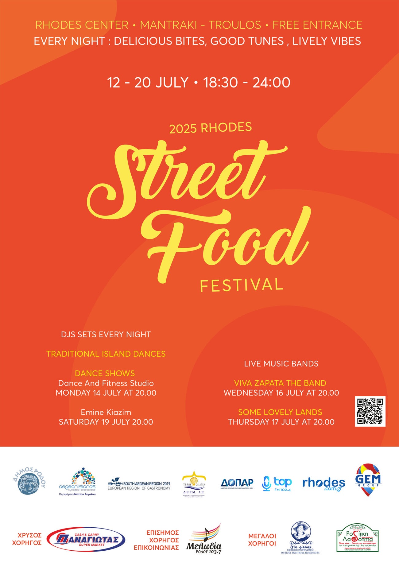 Tο Rhodes Street Food Festival, το αγαπημένο γαστρονομικό ραντεβού του καλοκαιριού, επιστρέφει για 9η χρονιά στη Ρόδο, υποσχόμενο μια αξέχαστη εμπειρία γεύσεων, μουσικής και διασκέδασης «Ήταν ένα όραμα που γεννήθηκε από την αγάπη μου για τη γεύση και την επιθυμία μου να προσφέρω στον τόπο και στους συμπατριώτες μου μια νέα, συναρπαστική εμπειρία. δηλώνει η Στέλλα Προύζου.διοργανώτρια του Festival. Φέτος, 12 – 20 Ιουλίου, όλοι οι food lovers συναντιούνται για ένα αξέχαστο “foodie experience” στον πιο κεντρικό πεζόδρομο στο Μαντράκι. Το Festival υπόσχεται ένα εκρηκτικό blend γεύσεων με δροσερά ποτά, συγκλονιστική μουσική από Djs, live μουσικά σχήματα, και παραδοσιακούς χορούς πολιτιστικών μας Συλλόγων .
