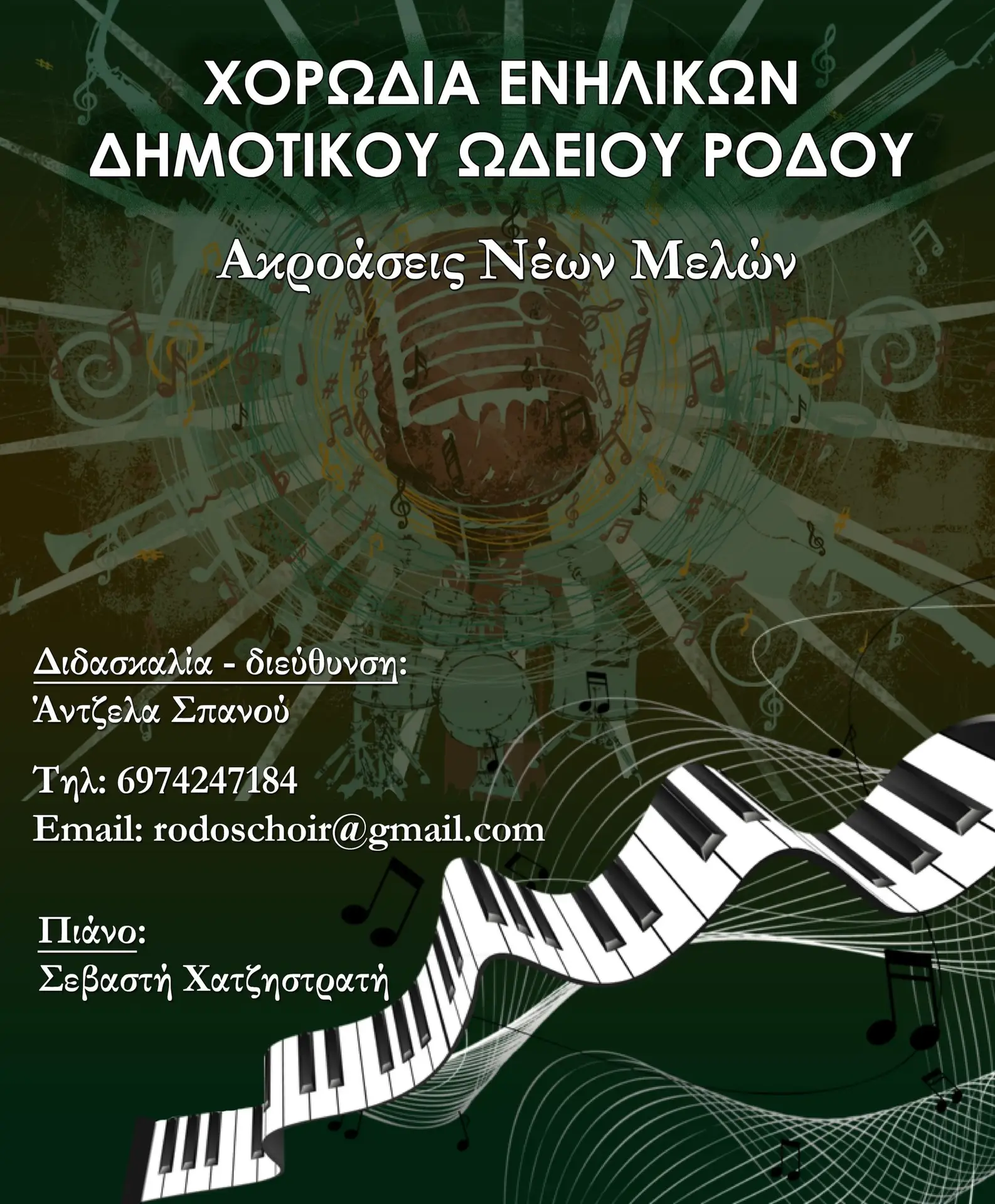 Η Χορωδία Δημοτικού Ωδείου Ρόδου καλεί ανδρικές και γυναικείες φωνές με σχετική ανακοίνωση: