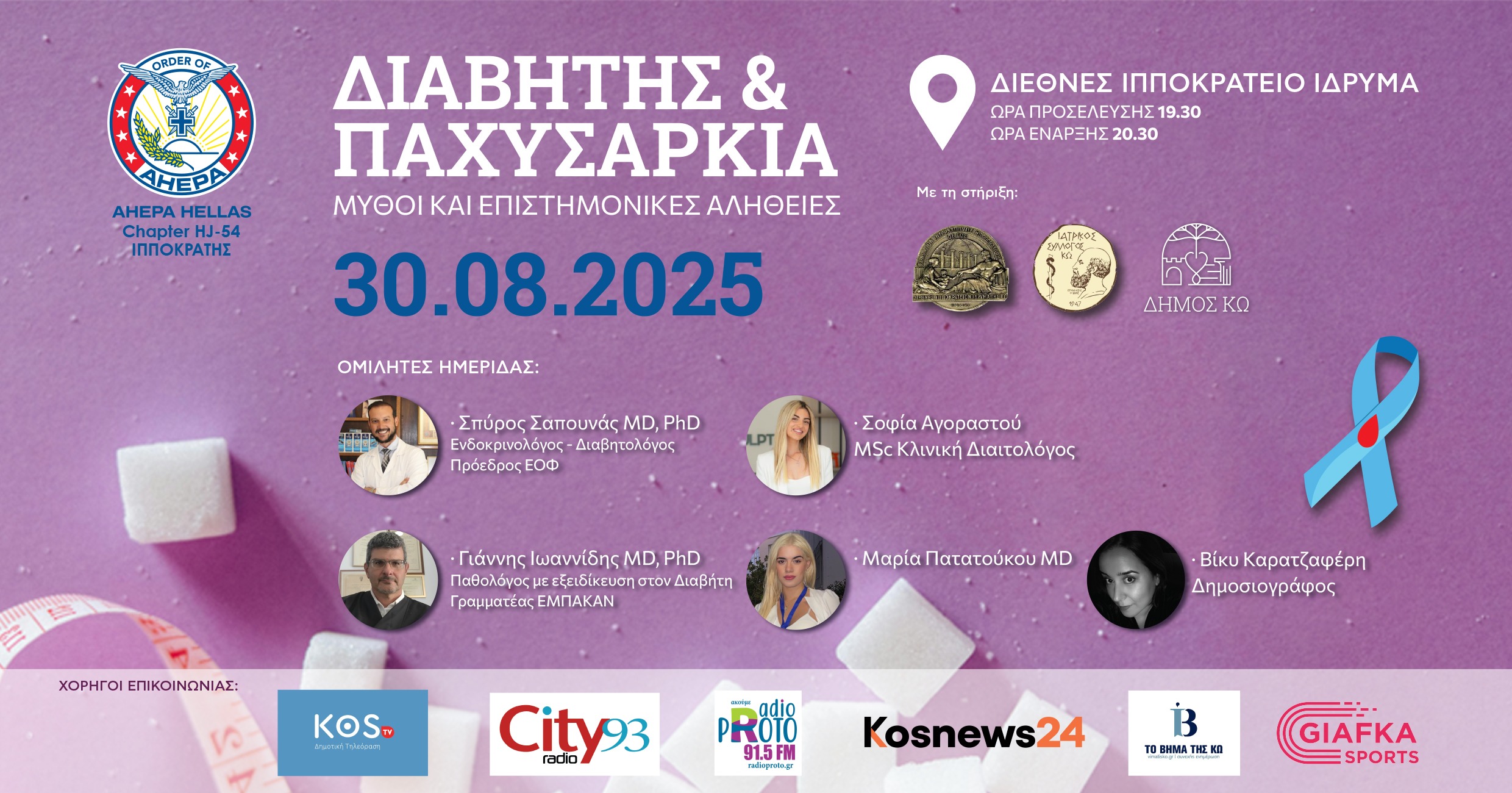 Η εκδήλωση θα πραγματοποιηθεί με την υποστήριξη του Διεθνούς Ιπποκράτειου Ιδρύματος (ΔΙΙΚ), του Ιατρικού Συλλόγου Κω (ΙΣΚ) και του Δήμου Κω.